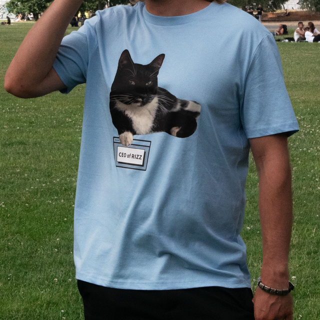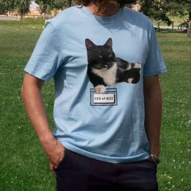 Mit unserem CEO of Rizz Shirt bringst du Vibe & Humor auf ein neues Level. Die Katze? Ultra smooth. Der Look? On point.